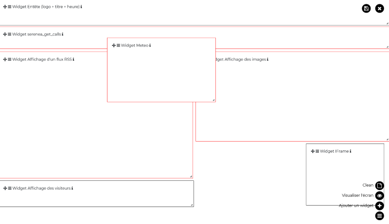 Les widgets qui composent une page peuvent être déplacés en cliquant sur et redimensionnés depuis leur coin inférieur droit.