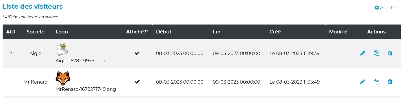 Vous pouvez ajouter des visiteurs pour créer une liste ou éditer des visiteurs existants.